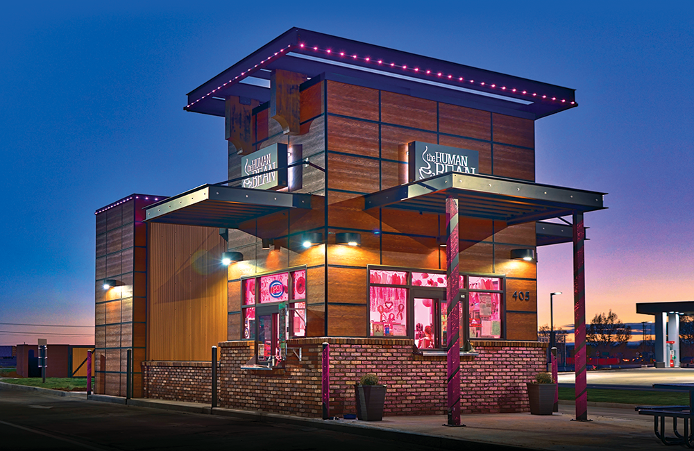 These color-changing, app-controlled LED lights are nearly invisible by day and brilliantly eye-catching by night. Professionally mounted along your building’s roofline or architectural features, Oelo’s system creates a seamless, permanent lighting solution that enhances branding, improves visibility, and attracts customers, every day of the year.